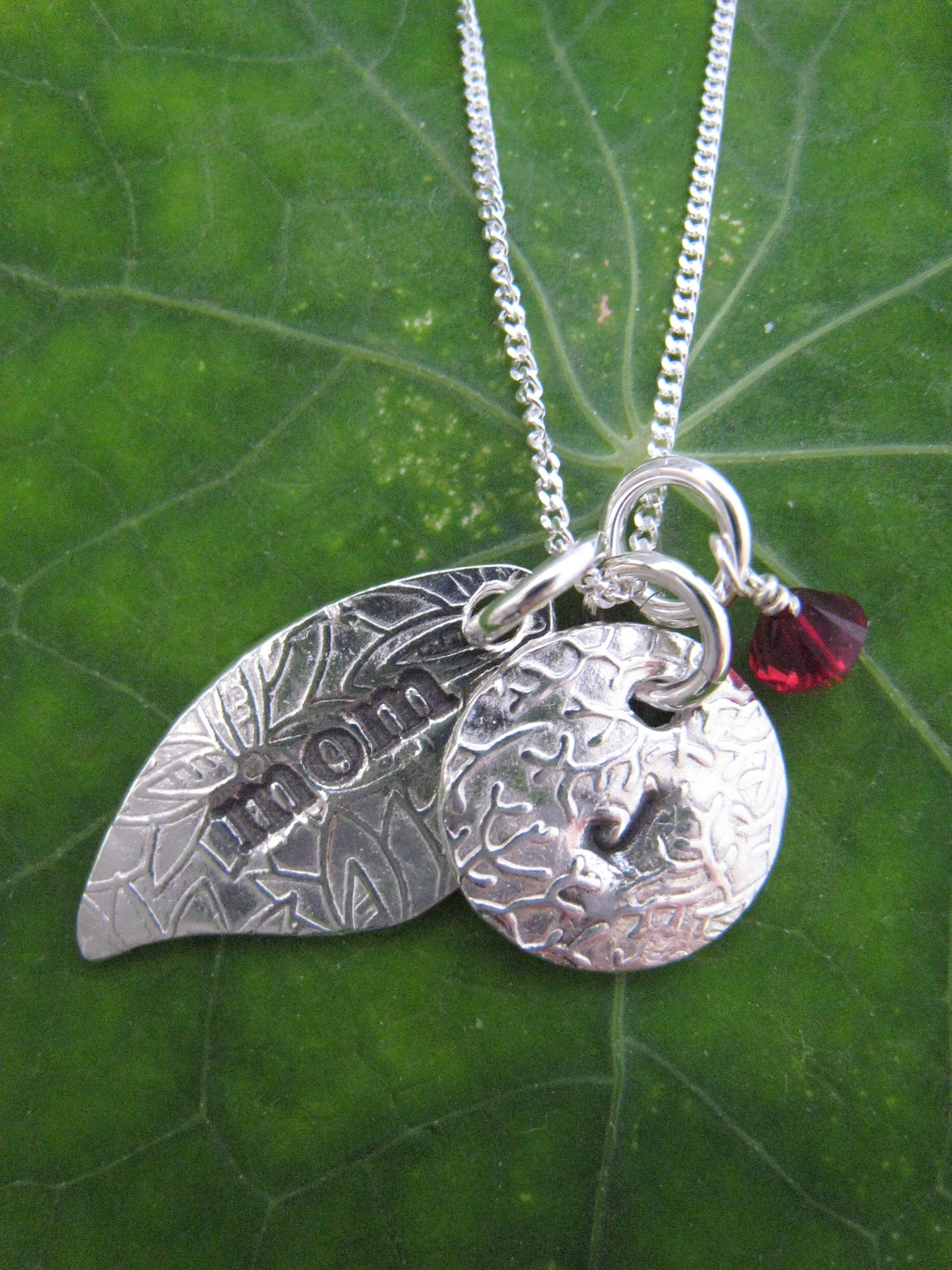 Mom Leaf Necklace with 1 Initial M,1 Birthstone