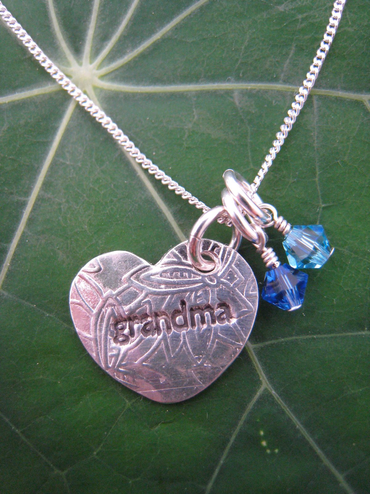 I create every heart one by one (the front and back have a different texture) and hand-stamp it with your chosen inspirational word. I added 2 Swarovski Crystal Birthstones for the grandchildren! Please let me know the birth months at checkout.
