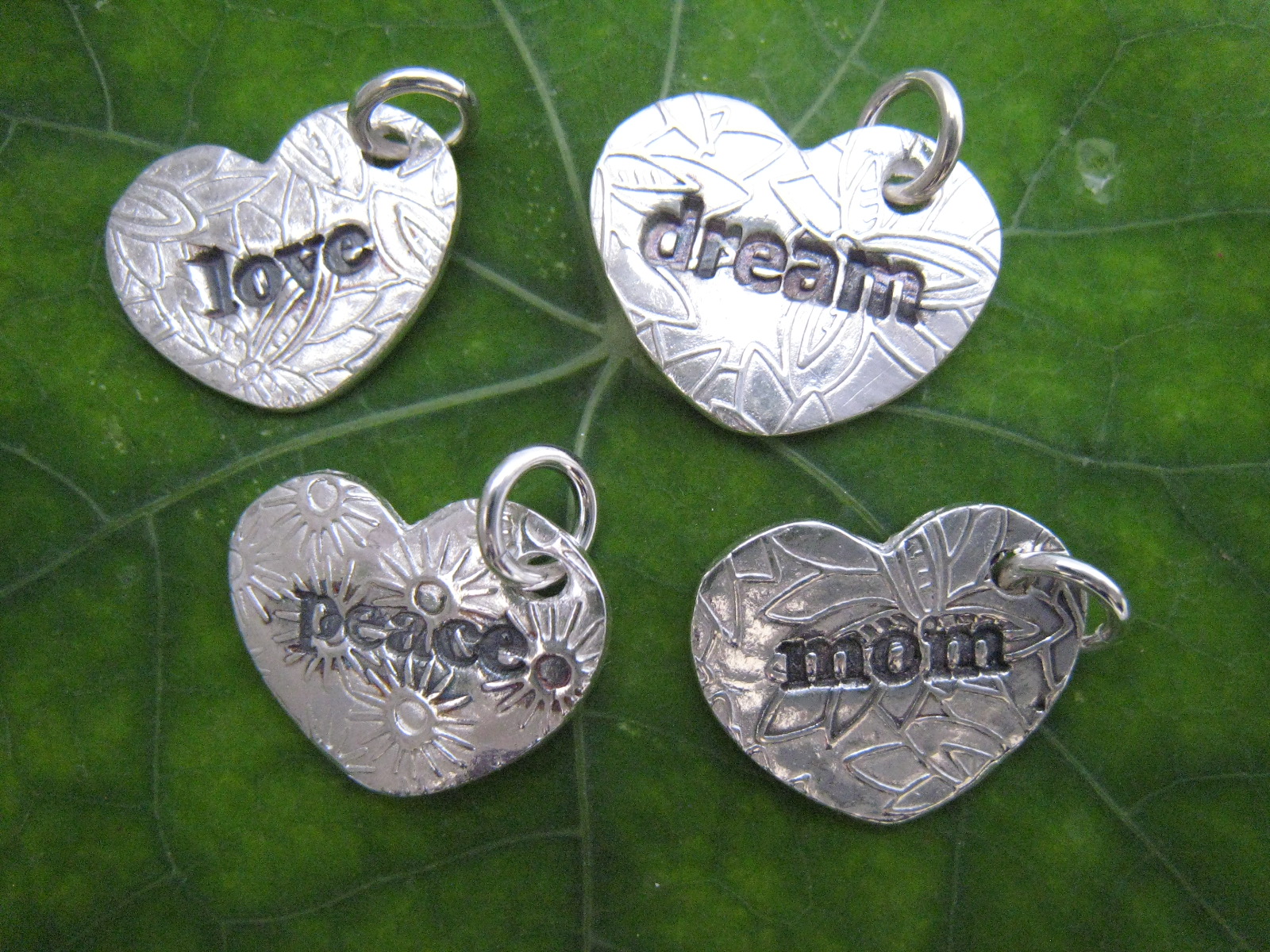 Each LoveLetter Heart Charm is handcrafted one by one. Every LoveLetter charm is a little different! The handcrafted heart with the hand stamped inspirational word can be paired with the LoveLetter Initial Charms, Birthstones, pearl charms from the LoveLetter collection. You are the designer! The charm is reversible and has a different texture on the back.