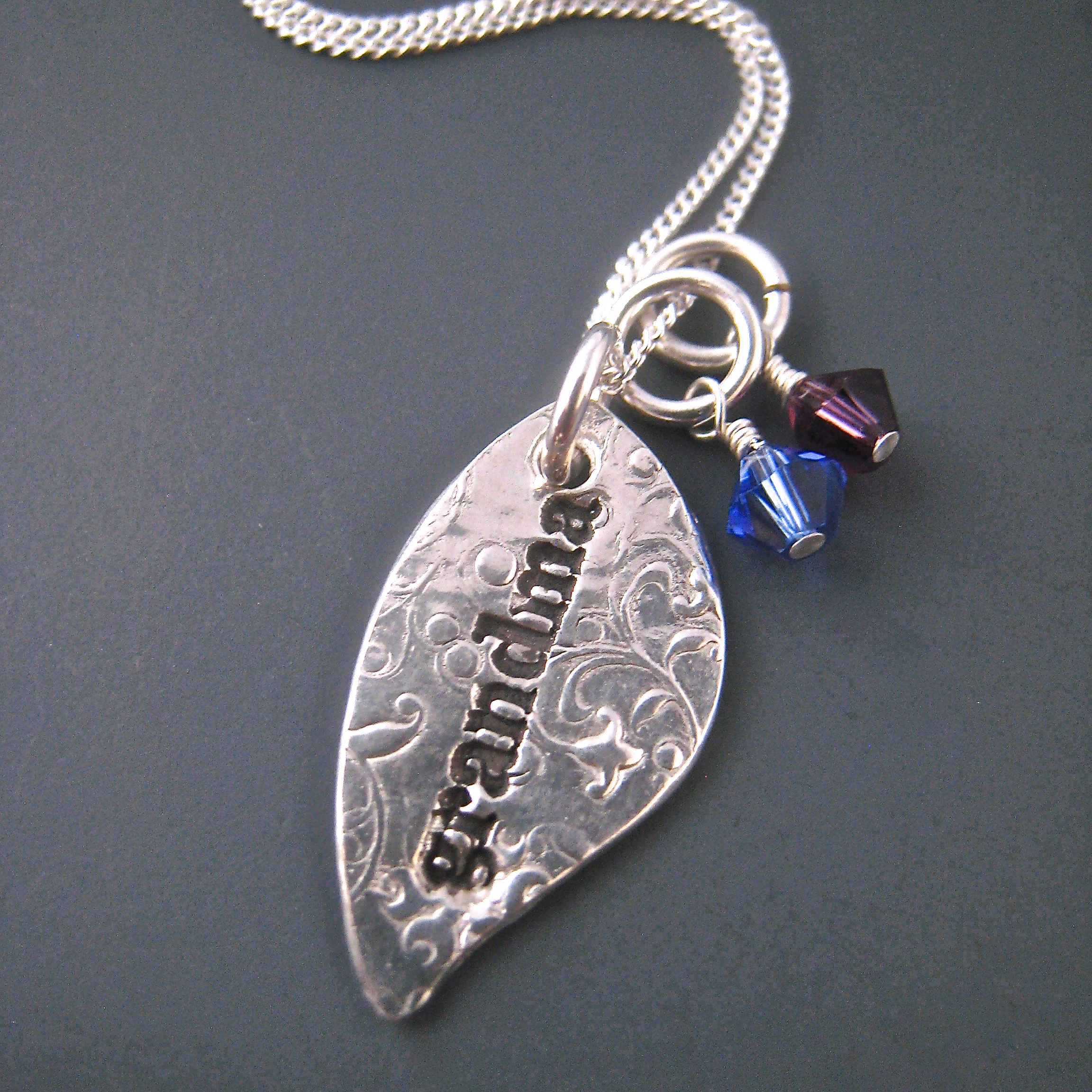 I create every charm one by one (the front and back have a different texture) and hand-stamp it with your chosen inspirational word. I added 2 Swarovski Crystal Birthstones for the grandchildren! Please let me know the birth months at checkout.